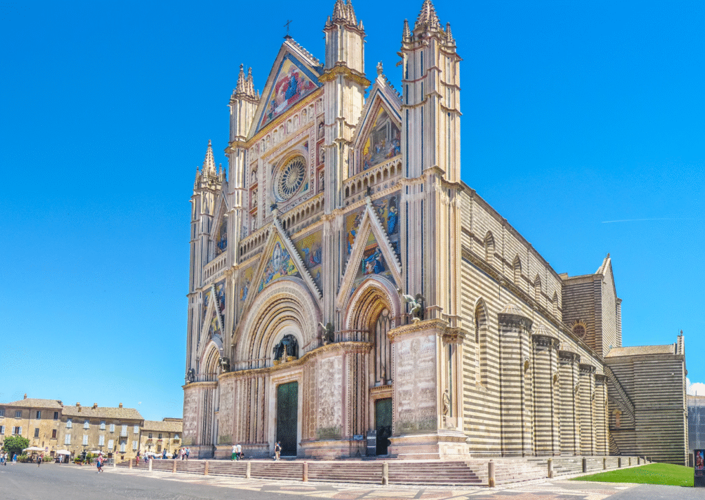 A hilltop town with a striking Gothic cathedral and ancient underground tunnels.