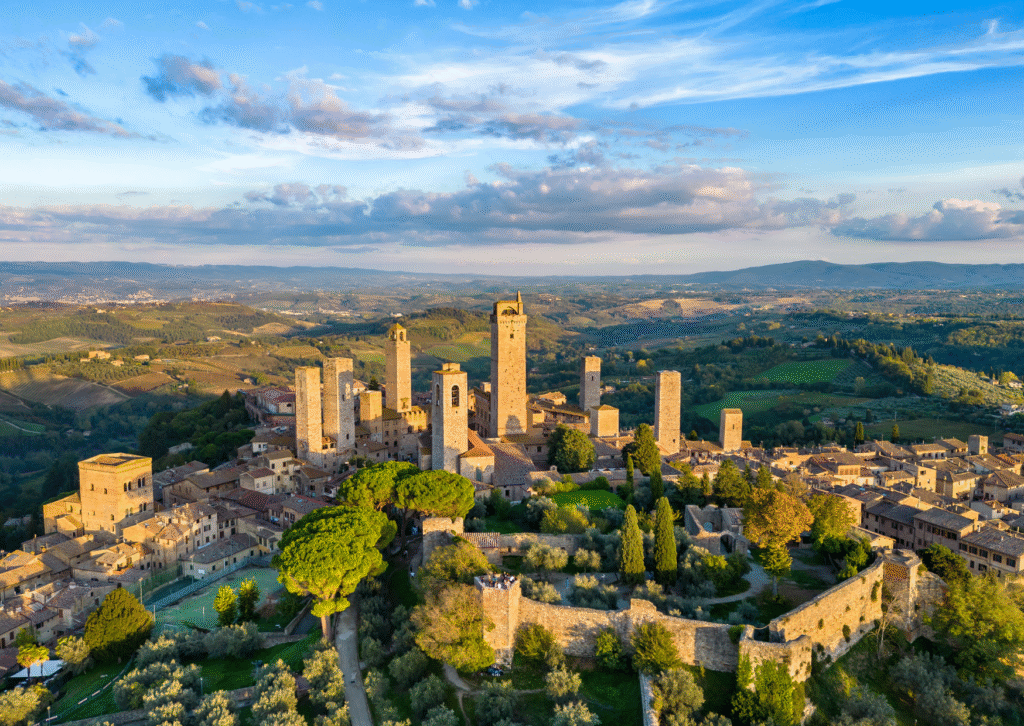 Torre del Moro is the best place to take pictures because it gives you a wide view of the countryside.