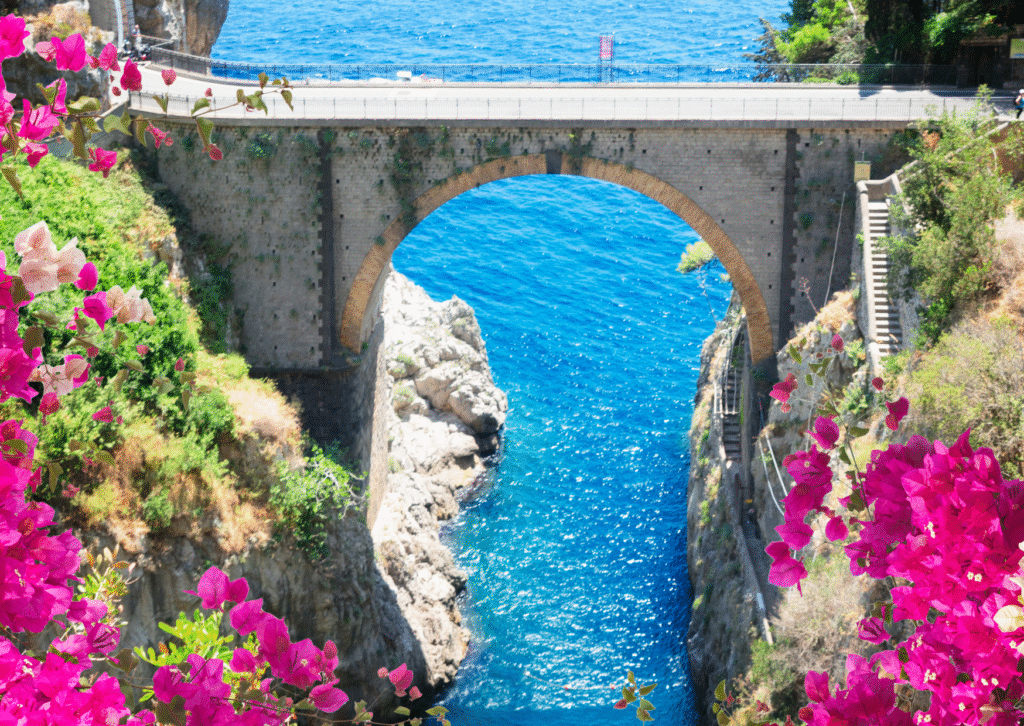 Positano’s beauty is almost too good to be true. Buildings in peach, pink, and lemon colours tumble down the cliffside towards the turquoise Tyrrhenian Sea. There are endless chances to take pictures while you shop at boutiques or relax on Spiaggia Grande.