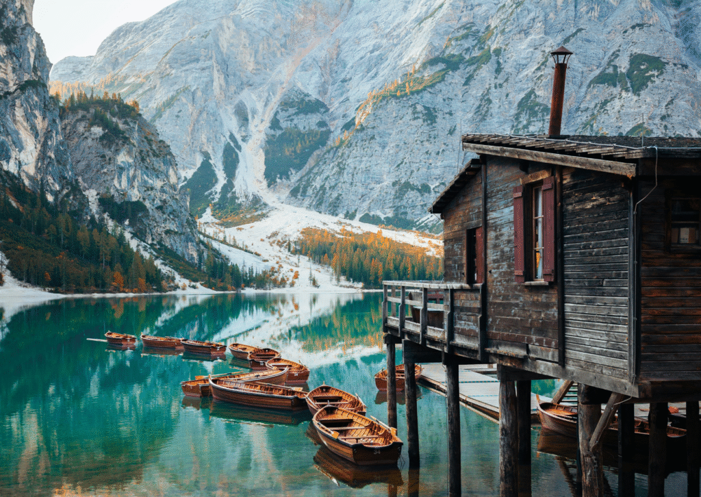 Lago di Braies with a wooden rowboat in the front is the best place to take pictures.