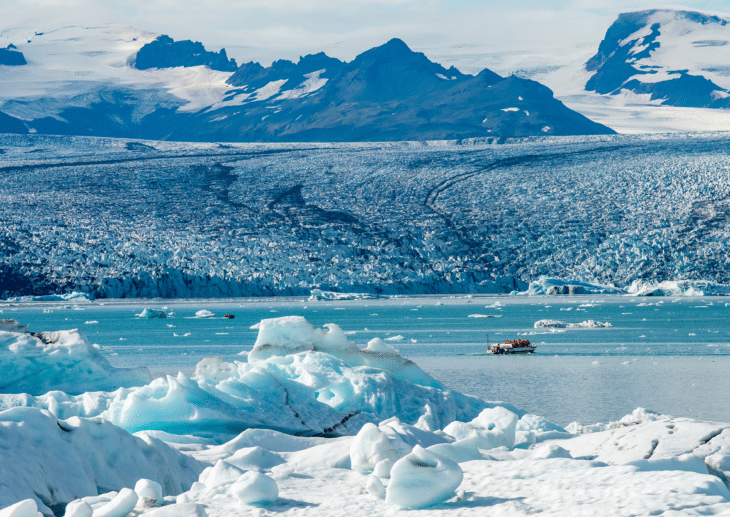 With skilled guides, you may walk on the glacier itself and watch how the ice is melting.