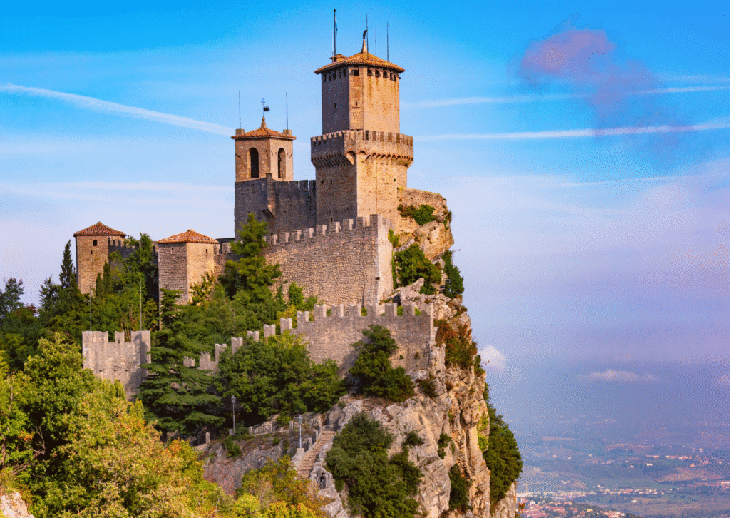 One of the oldest republics in the world is San Marino. It is in the Italian mountains.   This little country is a history lover’s dream because it has medieval towers and great views from the top of the hill.