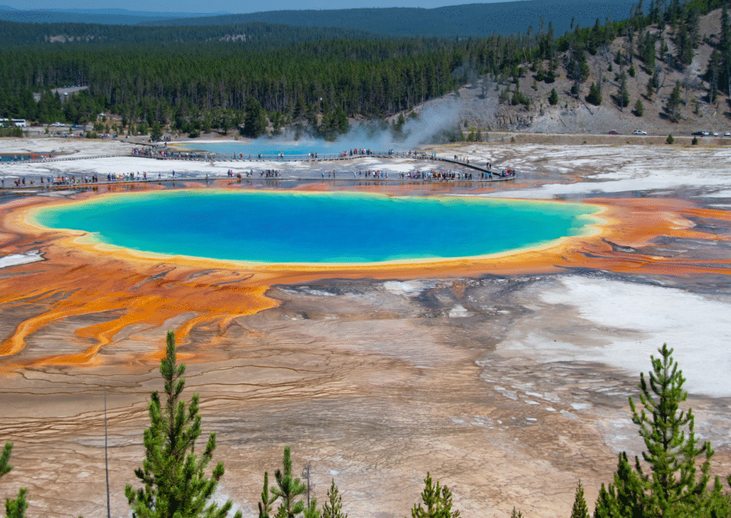- Grand Prismatic Spring is a hot spring that looks like a rainbow due to the heat from the volcano.