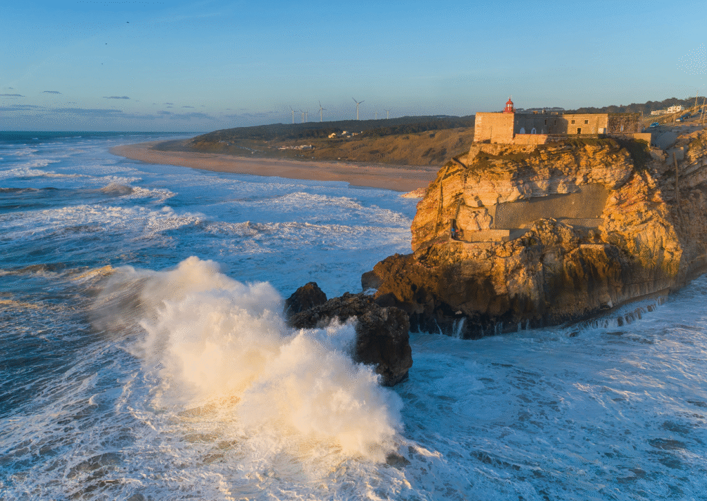 - If you’re new to surfing, Praia da Nazaré and Nazaré’s major beach has smaller and safer waves in the summer. This is a great place to take surf lessons or just relax.