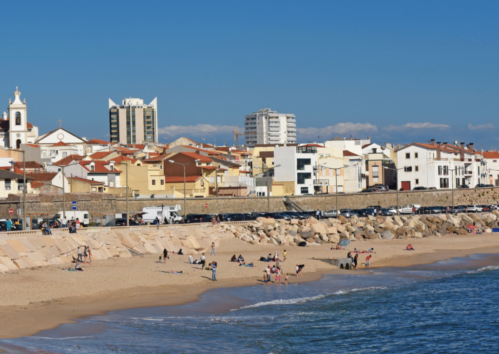 This beach is great for a family surfing vacation in Portugal. It’s close to Sintra. The golden sand, calm surf and laid-back town vibe make Praia das Maçãs a popular beach. It’s a terrific place for families with kids or beginners who want to learn how to surf together.