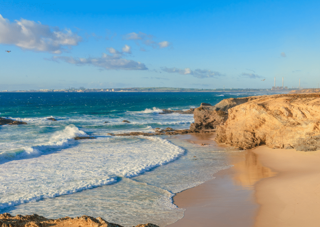 The waves here aren’t as strong as they are at Nazaré or Peniche, so it’s a perfect place for intermediate surfers or digital nomads who want to surf in a quiet setting. The Vicentine Coast Natural Park is close by and has beautiful coastline trails and untouched wildlife. It is a great place to go after surfing.