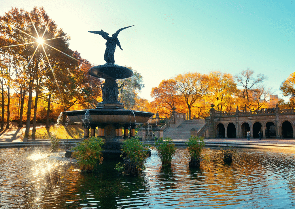Start at Bethesda Terrace, where the architecture and the changing seasons look fantastic combined. Then, walk to The Mall, a tree-lined path where you may enjoy the cool fall air. If you want to be active, rent a bike to view more of the park’s stunning spots, like Bow Bridge and the Jacqueline Kennedy Onassis Reservoir.